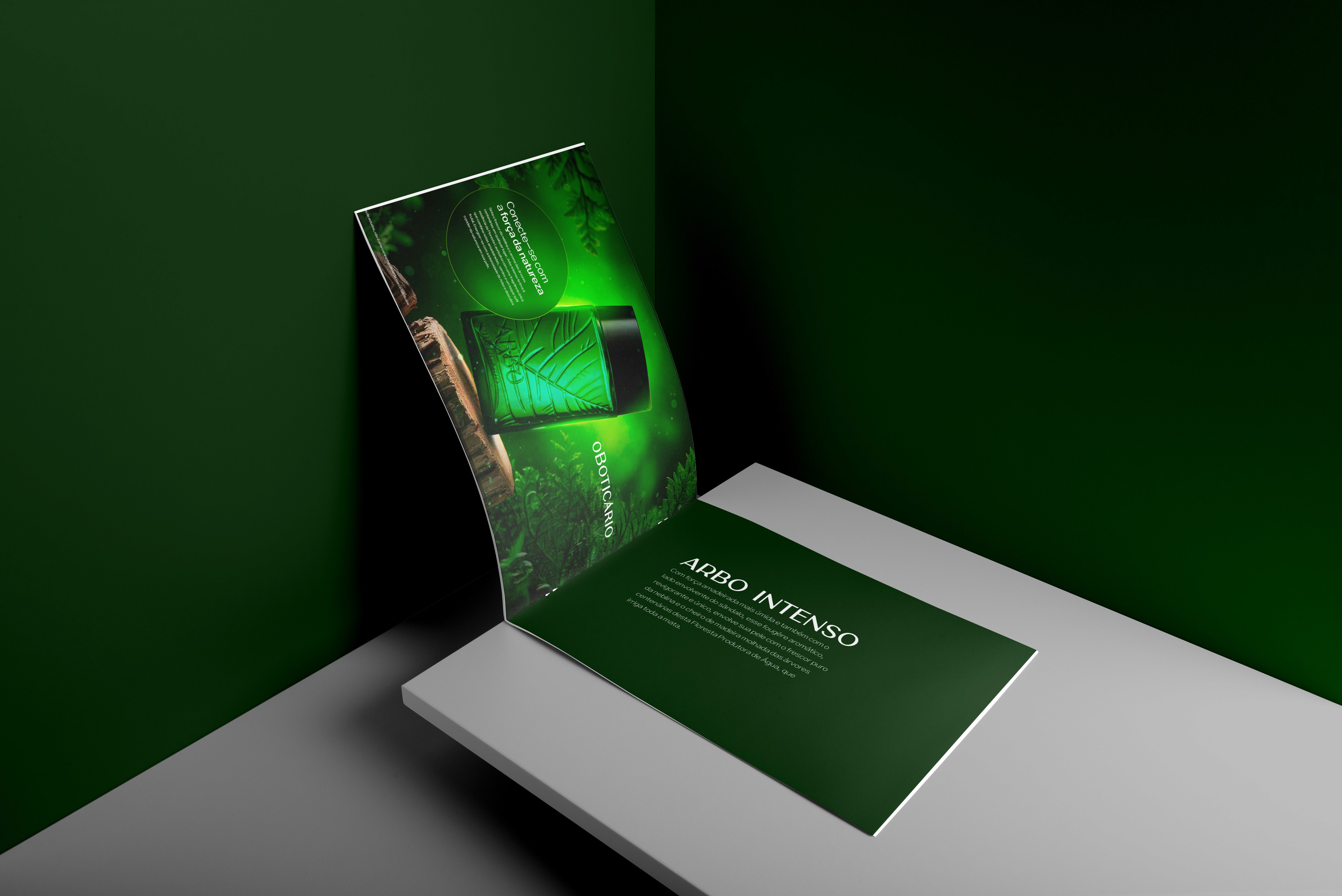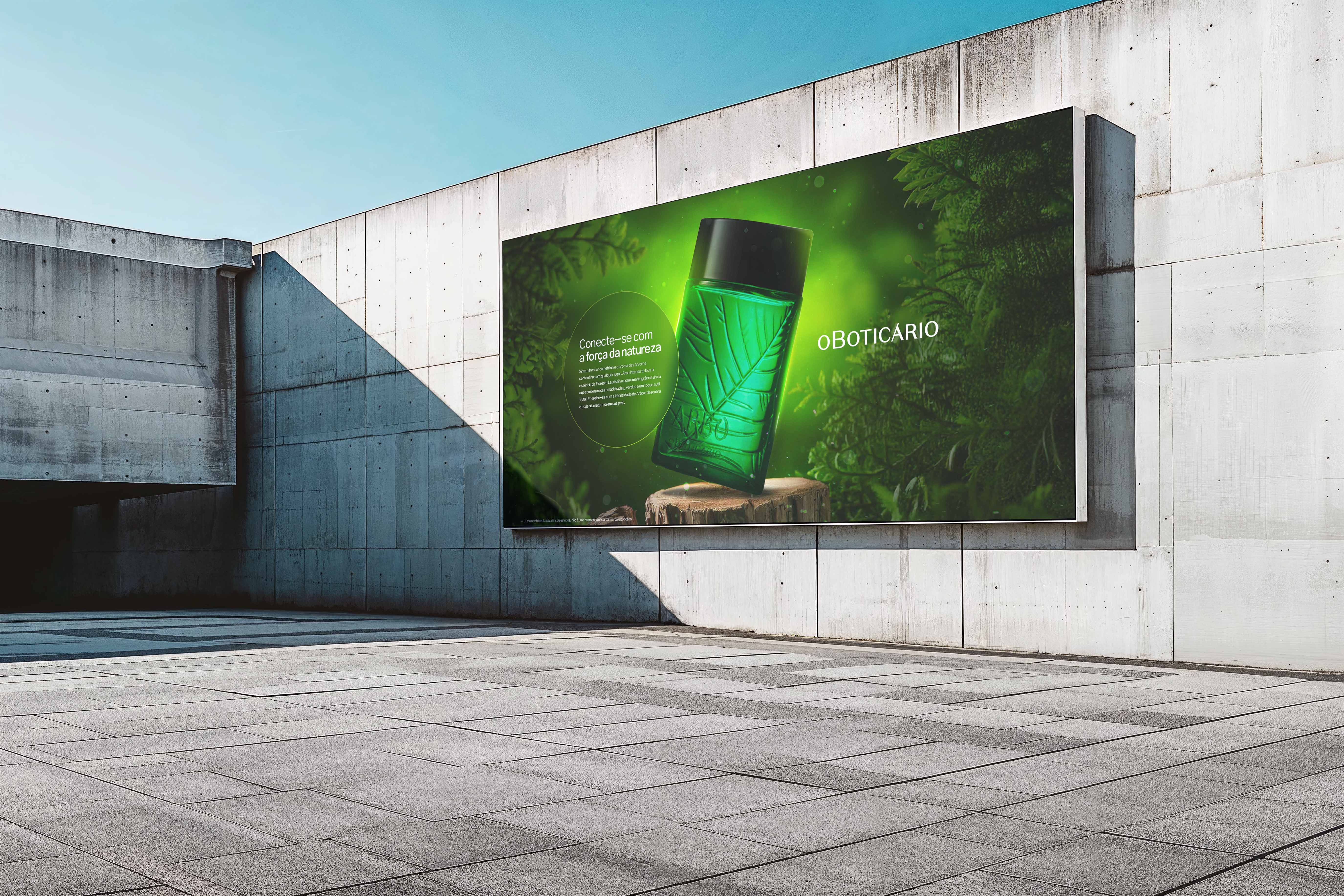 A campanha para o Arbo Intenso, da linha de fragrâncias d’O Boticário, busca transportar o consumidor para uma experiência sensorial com a natureza. Inspirada na essência da Floresta Laurissilva, nossa proposta é capturar a intensidade e frescor da floresta, criando uma atmosfera de conexão profunda com o meio ambiente, que é o diferencial desta fragrância. Conceito Criativo: "Conecte-se com a força da natureza" – este é o chamado central da campanha, convidando o público a sentir o poder revitalizante da natureza. Através da escolha de tons de verde vibrantes, iluminação natural e detalhes orgânicos, transmitimos a energia que o Arbo Intenso promete despertar.